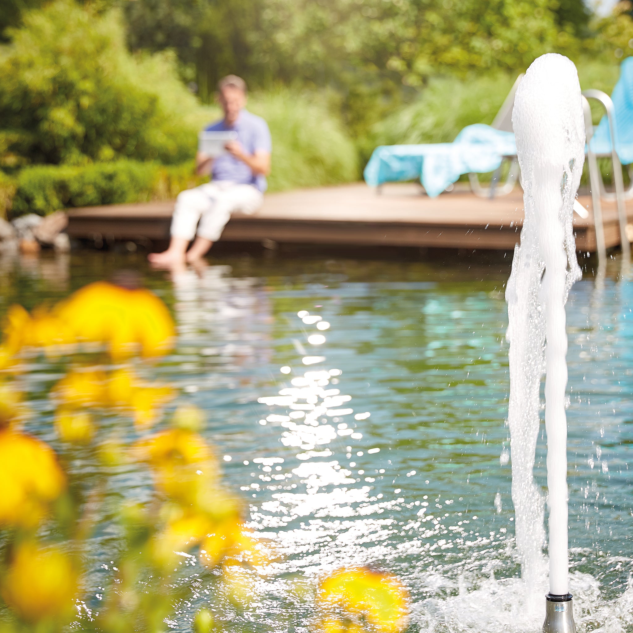 MORENone of the four basic elements can be staged as dynamically and impressively as water. No matter whether as a surface, watercourse, well, fountain, sprayed or in jets. You don't even necessarily need a pond.